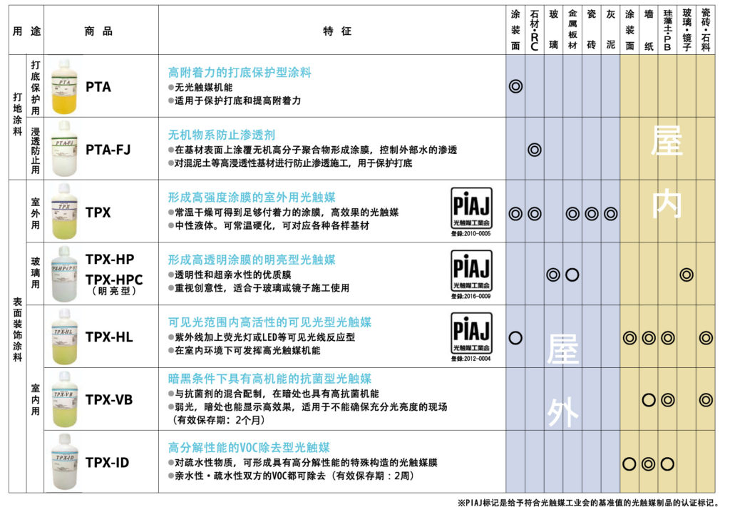 ※PIAJ标记是给予符合光触媒工业会的基准值的光触媒制品的认证标记