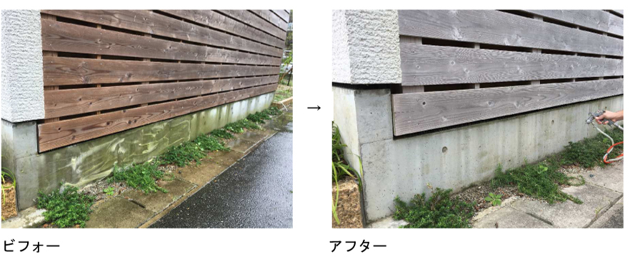 石に付着した頑固なカビや汚れを研磨機で除去し、乾燥後その上からコーティングしました。