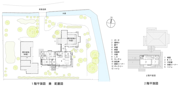民家の集落に建て替えした二世帯住宅です。格式高い既存の和室部分と新築する母屋部分とを、開放感あふれるギャラリーで緩やかに繋いでいます。